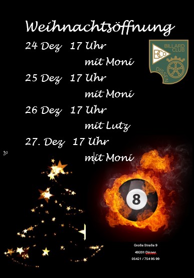 Öffnungszeite zu Weihnachten